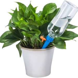 - Користењето на овој систем е многу едноставно: доволно е на дното на пластично шише да направите дупче со помош на шрафцигер (со што ќе овозможите водата да се ослободи), наполнете го шишето со вода, завртете го наопаку и забодете го со додатокот (шило) во саксијата. Со помош на прекинувачот (вентилот) можете да го регулирате протокот на вода и на тој начин да ја прилагодите потребната количина вода за секое растение поединечно