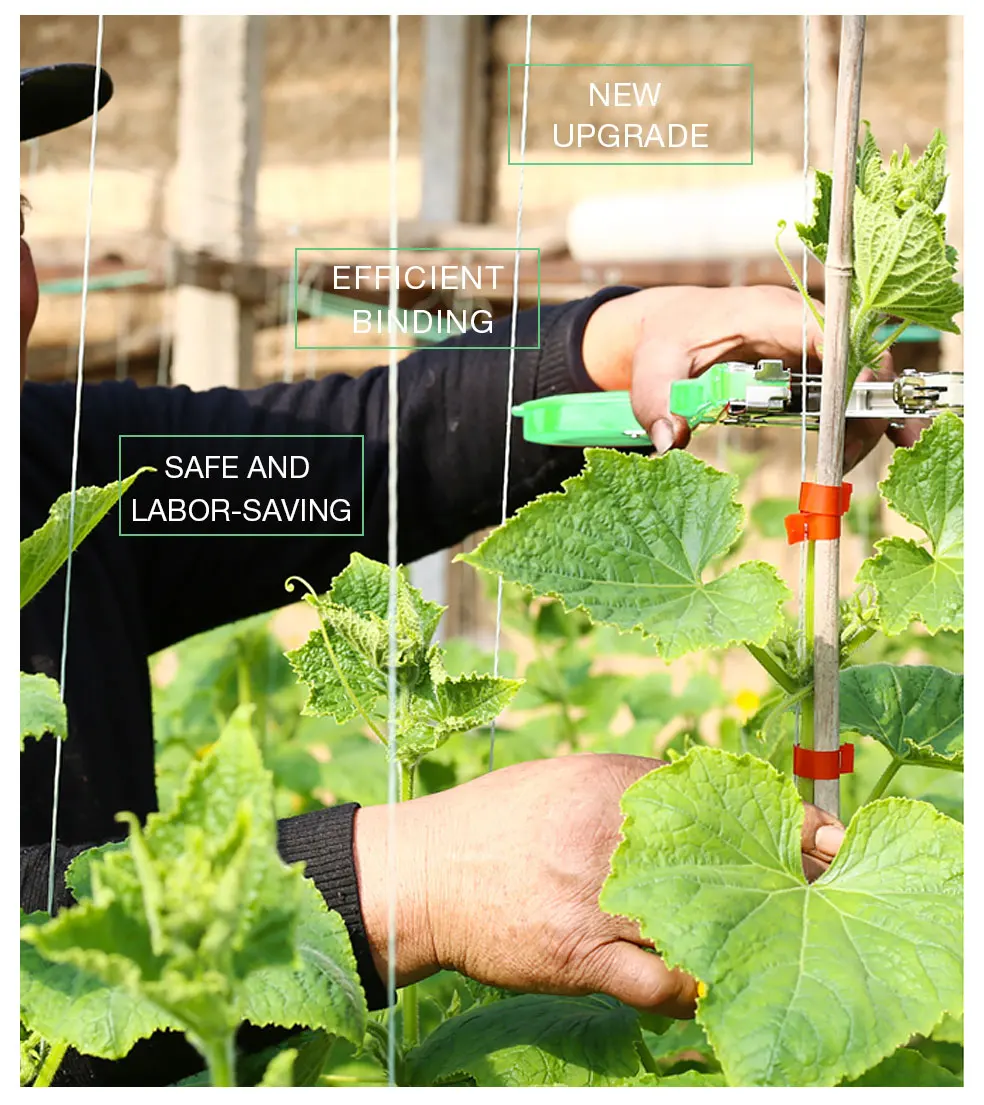 Процесот на врзување е 5-10 пати побрз отколку со рачно врзување. Спојувачот за градина тежи 0,5 кг. Спојувачот се испорачува во фабричка кутија со 1 лента, по 30 метри. Спојувачите се наоѓаат во внатрешноста на спојувачот. Алатката за градина е неопходен алат за градинар, кој се користи за врзување растенија од која било дебелина. Може да се справи дури и со тешко достапни гранки и стебла, обезбедувајќи им сигурна потпора и заштита од свиткување и оштетување. Алатка-спојувач или градинарска хефталка за врзување растенија. Идеален за сите видови гранки, како што се грозје, домати, краставици, дињи, модри патлиџани и многу повеќе.