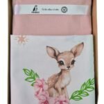 Бебешка постелнина изработена од 100% памучен сертифициран материјал, создадена за нежност и удобност на вашето бебе.