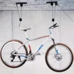 - Практичен сет од 2 издржливи метални закачалки со тавански макара-систем за лесно и безбедно складирање на велосипеди