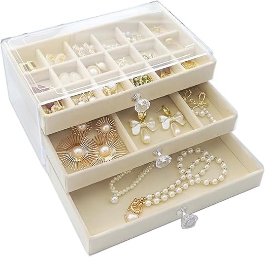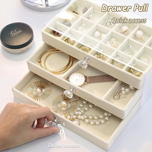 Оваа кутија за накит со 3 фиоки е совршен додаток за секој кој сака уреден и лесен пристап до своите модни додатоци. Со својот елегантен дизајн и функционални карактеристики, ќе го направи чувањето на вашиот накит пријатно и организирано искуство.