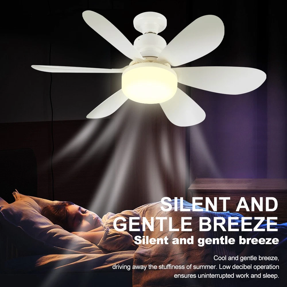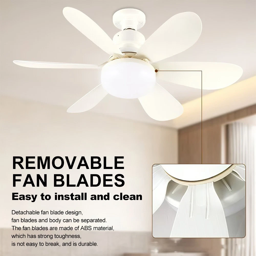 Лесно се инсталира. Вентилаторот на таванот е компатибилен со E27 и далечинскиот управувач. Без разлика дали ви треба ладење во вашата кујна или спална соба, едноставно одвртете го модерниот вентилатор од приклучокот за светло и инсталирајте го каде што сакате. Ротација од 360° за да се задоволат потребите за ладење под различни агли. Уживајте во удобност и флексибилност каде и да одите!
