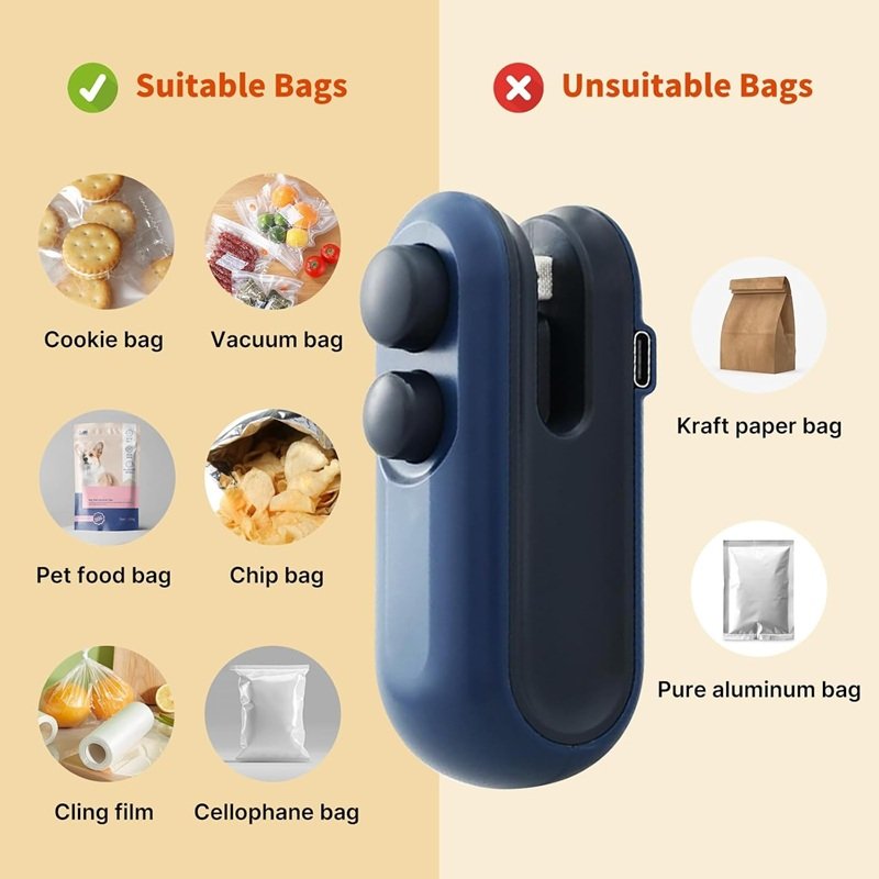 Ви ја претставуваме оваа фантастична алатка со која ќе ги запечатите сите ќеси: смоки, грицки, шпагети, макарони, ориз, грав, зачини, итн…