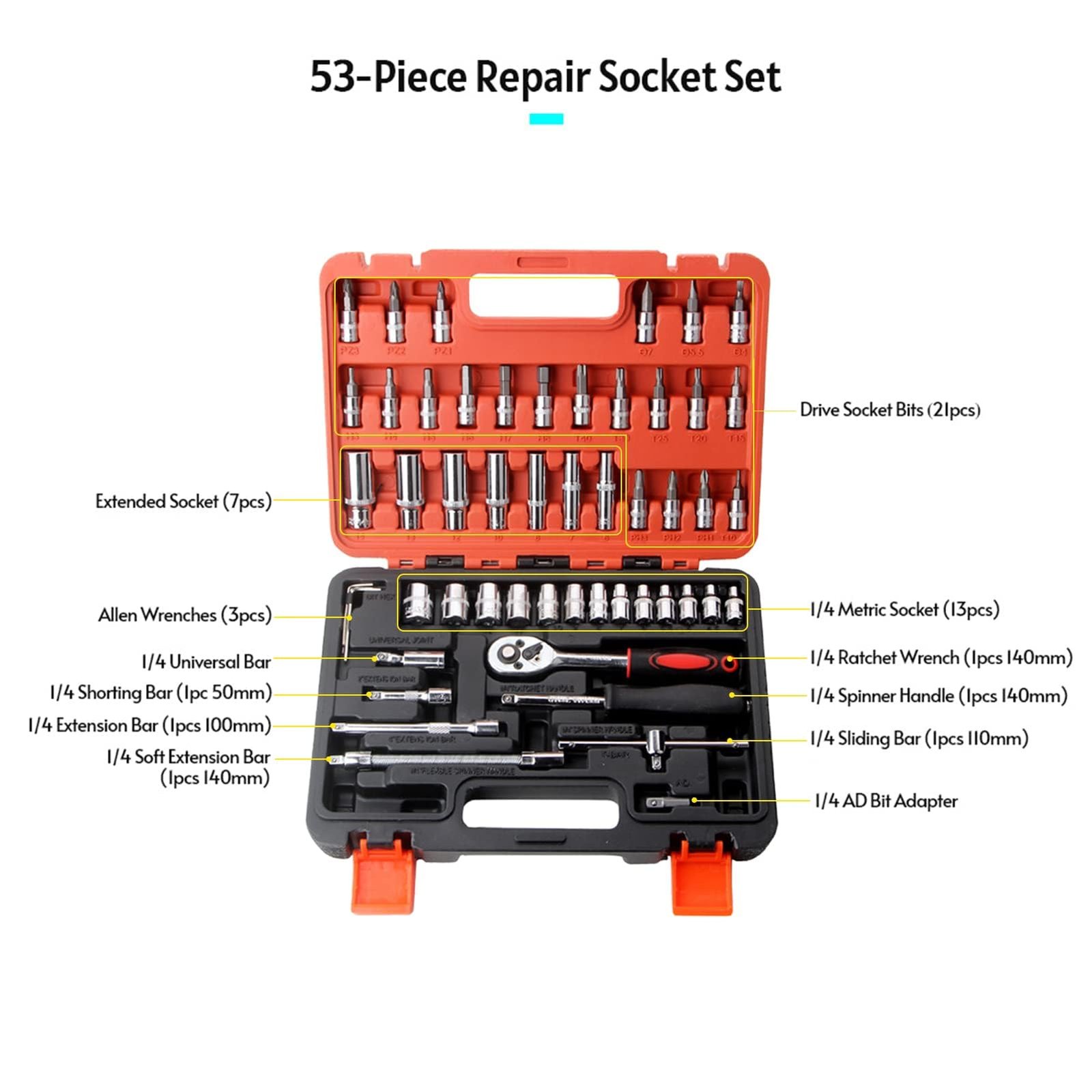 Од поправки покрај патот до поправка на автомобили, камиони или велосипеди во недела, овој комплет алатки обезбедува практична и корисна колекција на основни алати. Корисен е за секого, од автомеханичари, до мајстори, сервисери и генерално сите луѓе. Идеален за секојдневно одржување на автомобили или домови.