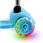 2. LED светла: Опремен со LED светла на предната страна, овој тротинет го прави вашето дете видливо и безбедно при возење на ноќ. Светлата се активираат автоматски при движење, што го прави тротинетот уште поатрактивен за вашето дете.