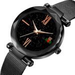 1. Магичен дизајн: Женскиот часовник – Star Sky е вистинско уметничко дело. Неговиот циферблат е вдишувачки илустриран со преубави слики на звезди и галаксии, што го прави уникатен и привлечен за погледот.