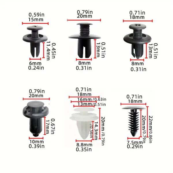 • Со пластични нитни и штипки, различни пластични навртки, овој комплет овозможува лесно инсталирање на додатоци како стерео системи, уреди за навигација или LED светла
