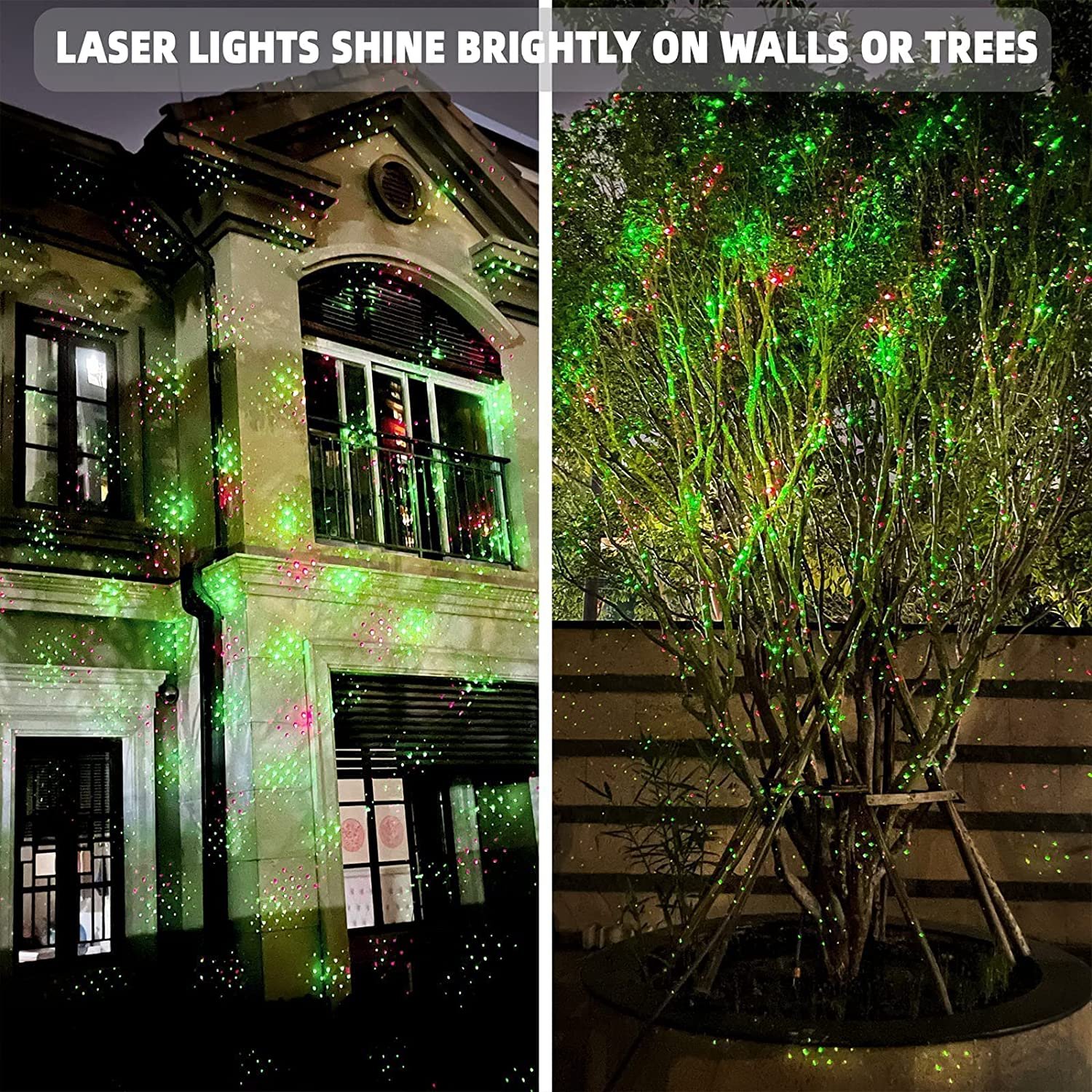 - Повеќенаменски празничен проектор со зелено-црвени шаблони со точки (светулки)