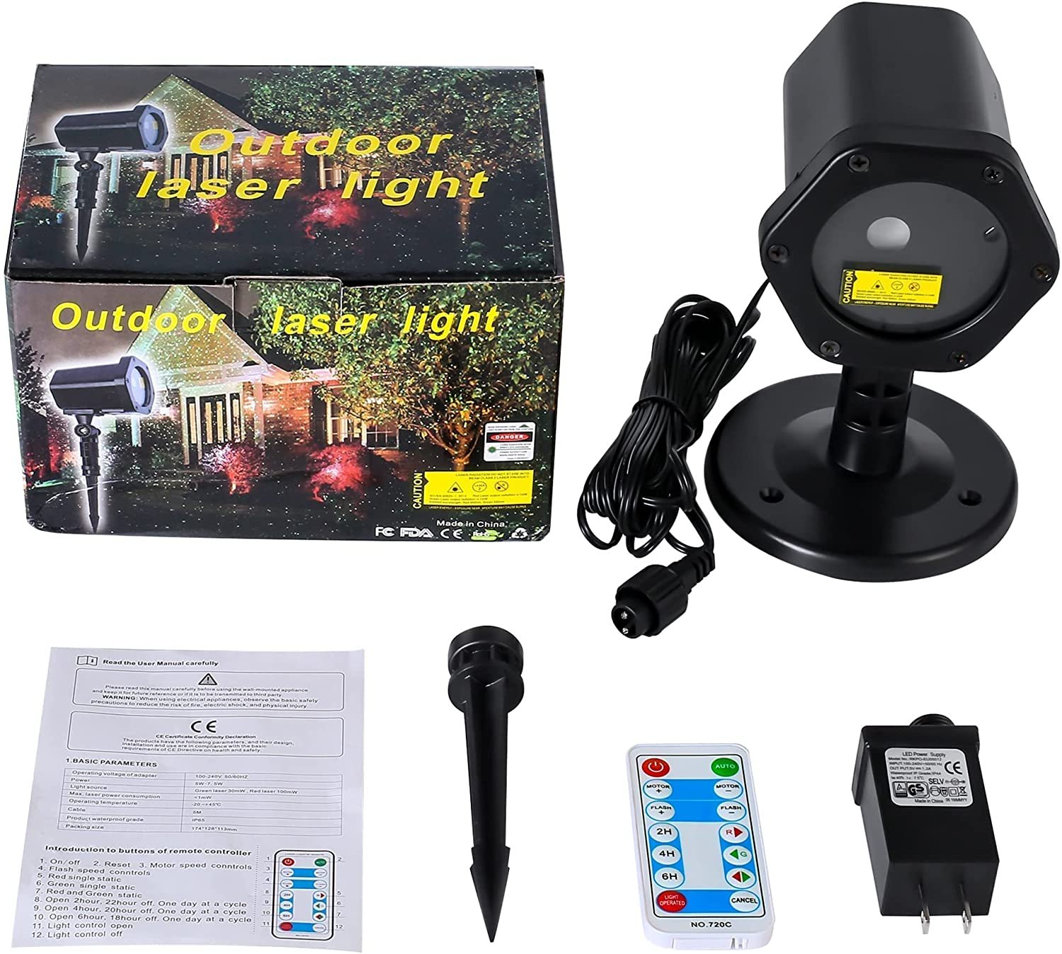 Ласерски проектор со светулки во зелено-црвена боја