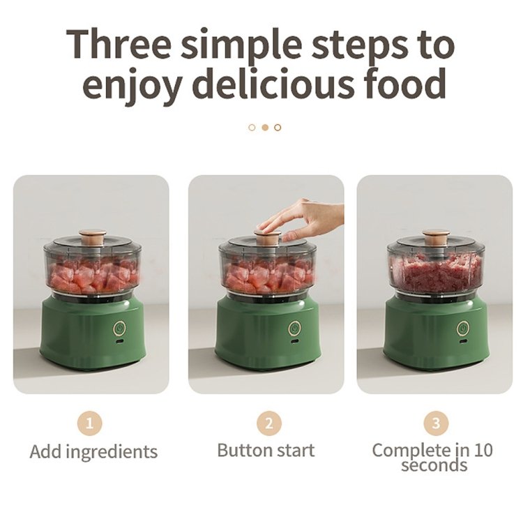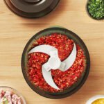- Работи со притискање на едно копче: Едноставно ставете ги состојките во мини процесорот, затворете го капакот и притиснете на копчето за брзо сечкање на храната