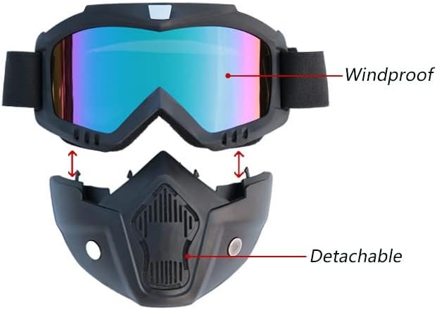 Овие очила со заштитна маска за моторциклисти се направени од PC материјал за леќи, кој обезбедува висока резолуција и заштита од УВ зраци. Издржливиот и отпорен на удар ABS материјал од кој е направен и рамката и маската овозможува целосна заштита на лицето, правејќи ги совршени за мотокрос, АТВ и теренски спортови.