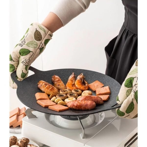 Оваа BBQ тава е изработена од висококвалитетен материјал, што гарантира долготрајност и издржливост. Нелепливата површина на тавата спречува храната да се залепи и го олеснува чистењето по употребата. Со нејзината помош, ќе можете да приготвите различни видови на скара, како што се месо, пилешко, риба, зеленчук и многу други.