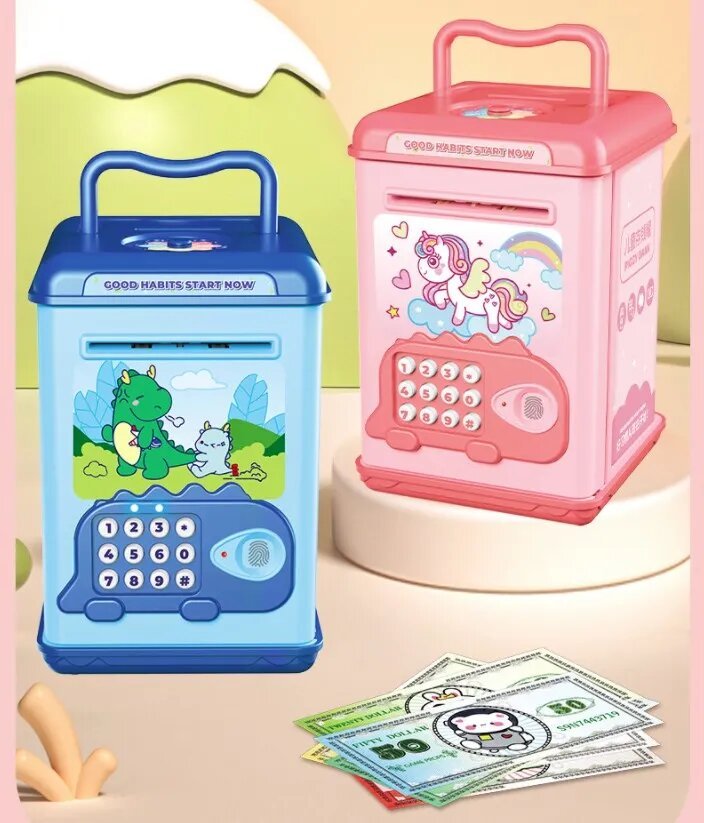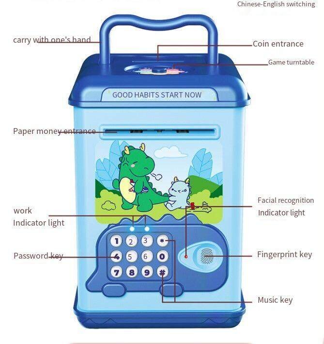 • Паметна детска касичка за чување пари со отклучување преку отпечаток од прст и лозинка