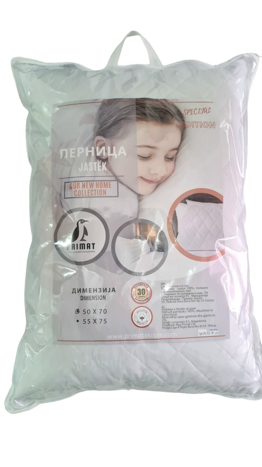 Перницата од 100% памук е дизајнирана да обезбеди оптимална мекост и поддршка за главата и вратот. Благодарение на природниот памучен материјал и полнењето со силиконизирани снегулки, оваа перница е идеална за здрав и освежителен сон.