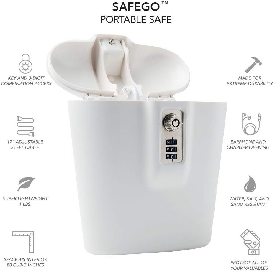 Kомпактен и издржлив сеф, создаден за безбедно складирање на пари, телефони, документи, накит и други предмети, без разлика дали сте на плажа, во хотел, теретана, камп или канцеларија.
