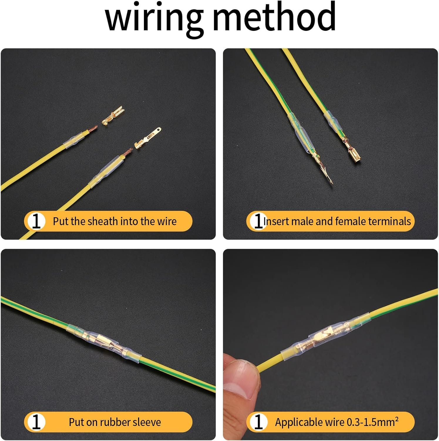 Конекторите се дизајнирани за едноставно поставување со цврсто држење на жиците. Вметнете ги краевите на жиците во конекторите и прицврстете ги за да се обезбеди стабилна и сигурна врска без дополнителни алатки.