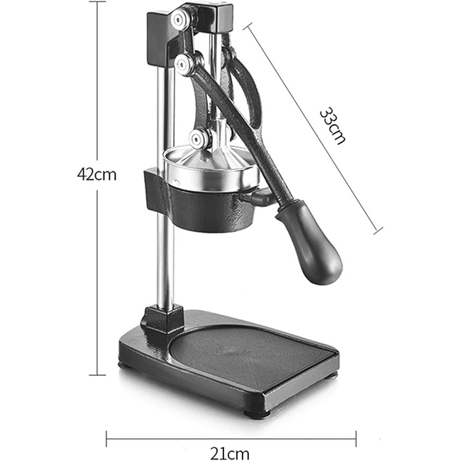 Со својата цврста конструкција од леано железо и цедалка од нерѓосувачки челик, тој нуди долг век на траење и максимална ефикасност – совршен за домашна и професионална употреба.