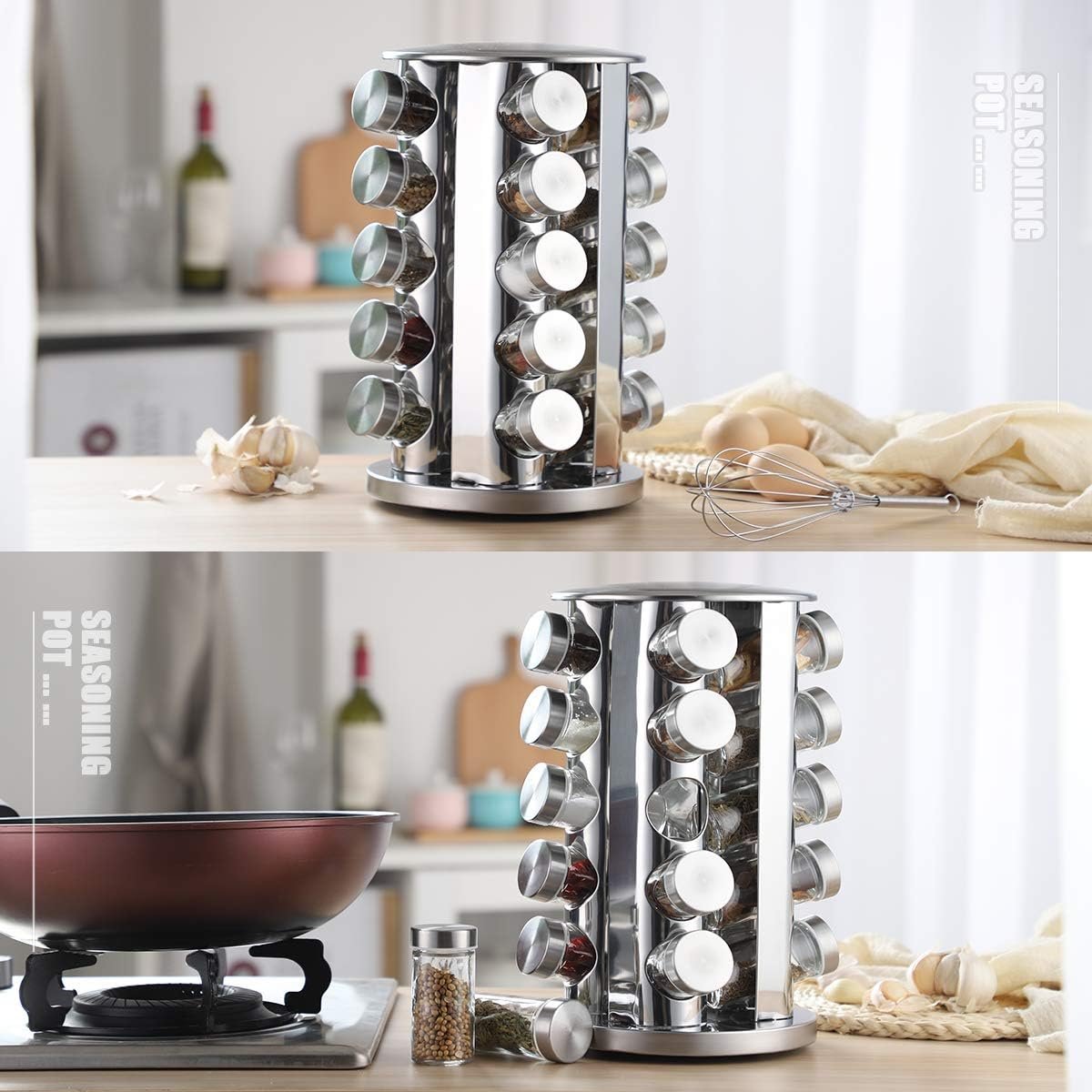 Овој ротирачки држач за зачини има многу предности и функции кои ќе ви помогнат да го подобрите искуството на готвење во вашата кујна. Прво, со своите вртежни рафтови, овој држач овозможува лесен пристап до секој зачин или подлога, без потреба од пребарување и преместување на различни буркани и боци. Ова значи дека ќе имате повеќе време за готвење и помалку време потрошено на пребарување.