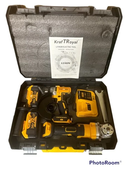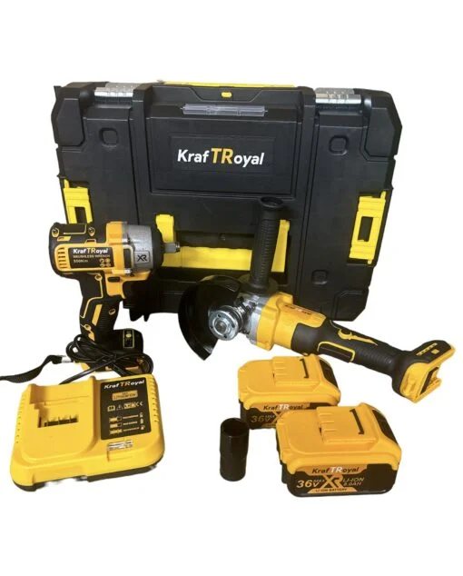 Промотивен пакет со две машини во куфер, со 2 батерии и 1 полнач. Овој сет е совршен за професионална и домашна употреба, комбинирајќи аголна брусалка и ударна шрафилица со моќен перформанс и ергономски дизајн.