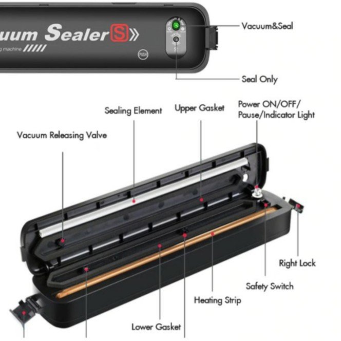 1. Вакумирање на храна: Овој уред е опремен со моќна вакумска пумпа која ќе ви овозможи да го извлечете воздухот од ќесите и контејнерите. Оваа технологија го задржува свежиот вкус и аромата на вашата храна, што значи дека можете да уживате во свежи и вкусни оброци подолго време.